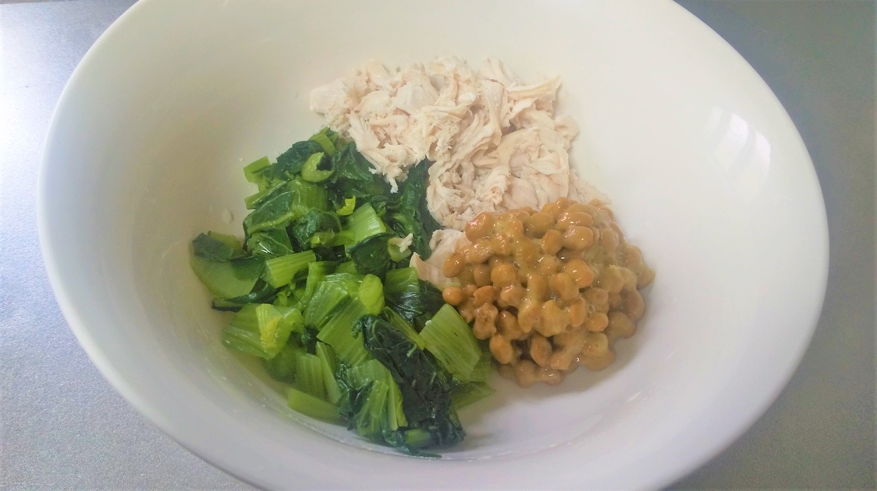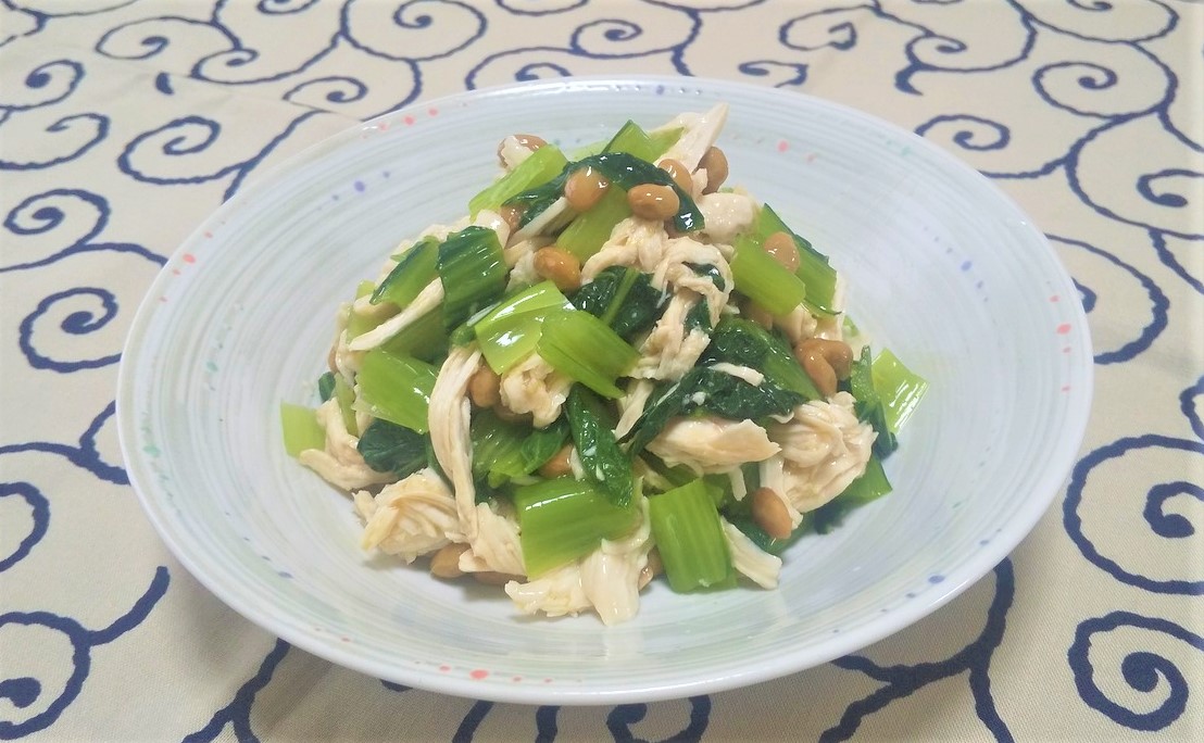 たんぱく質たっぷり!鶏と小松菜の納豆和え介護食とカラダのコラム&レシピ食事の相談窓口サイト ごはんde笑顔そして健康。