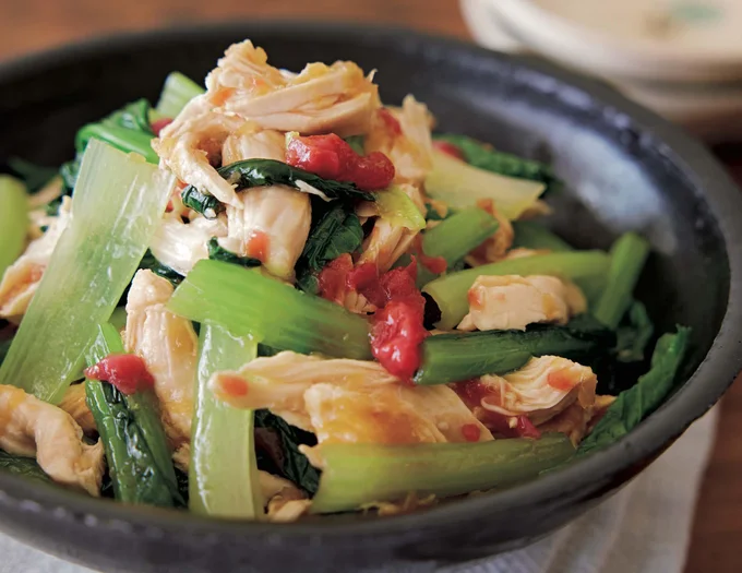 低カロリー&高たんぱく質の最強食材で、燃える体を作る!「ゆでささ身と小松菜の梅玉ねぎあえ」 - レタスクラブ。