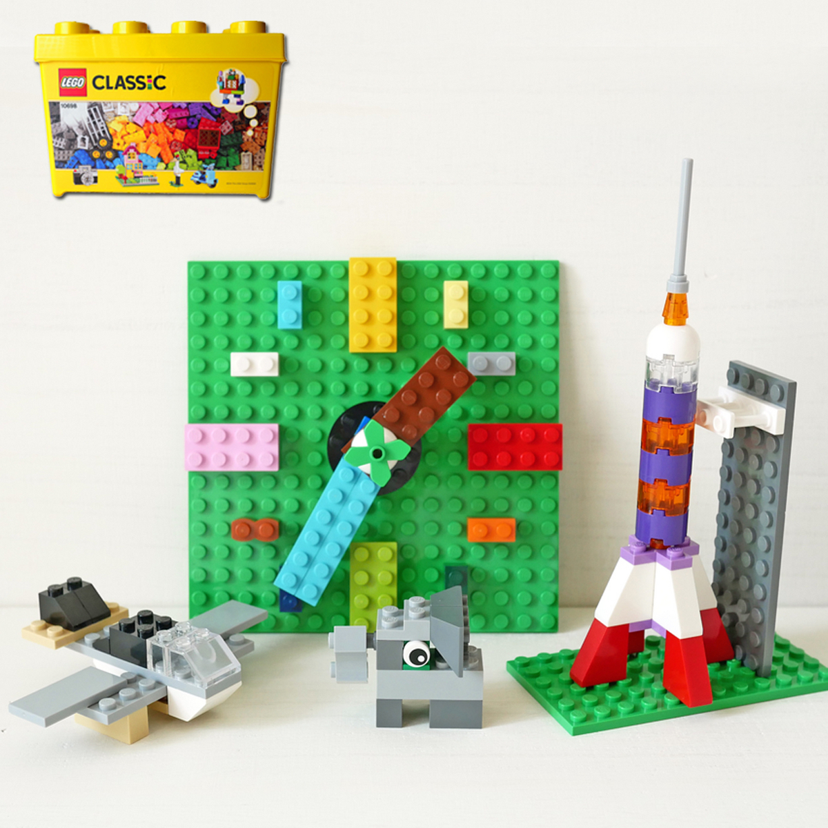 レゴ:ゾウ、時計、飛行機、ロケットの作り方 LEGOクラシック10698だけで作ったよオリジナル説明書4つ同時に作れます! - シドロモド記レゴの作り方。