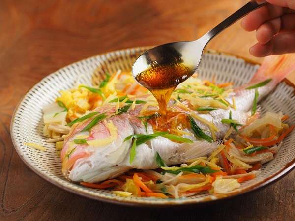 連子鯛レシピ 連子鯛の酒蒸しをオリーブオイルドレッシングで。