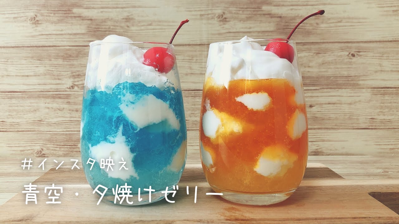 話題 おうちでインスタ映え!青空ゼリー・夕焼けゼリーの作り方 夏スイーツ。