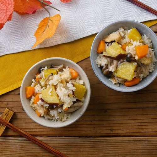 白だしだけで簡単!ほくほくさつまいもときのこの炊き込みご飯 : 日々のごはんとおやつのネタ帳~簡単なのも、丁寧なのも~ Powered byライブドアブログ。
