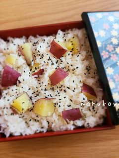 さつま芋ご飯🍠 ^o^今回は白だしを使った 簡単レシピを紹介しました✨ 是非作ってみてね〜💕材料○さつまいも 1本 ○米 2合 ⭐︎ 白だし 大さじ3 ※お好みで ごま塩 ①さつまいもは食べやすい大きさに切る。 ②5〜10分水にさらす。 ③炊飯器に研いだ米、白だしを。