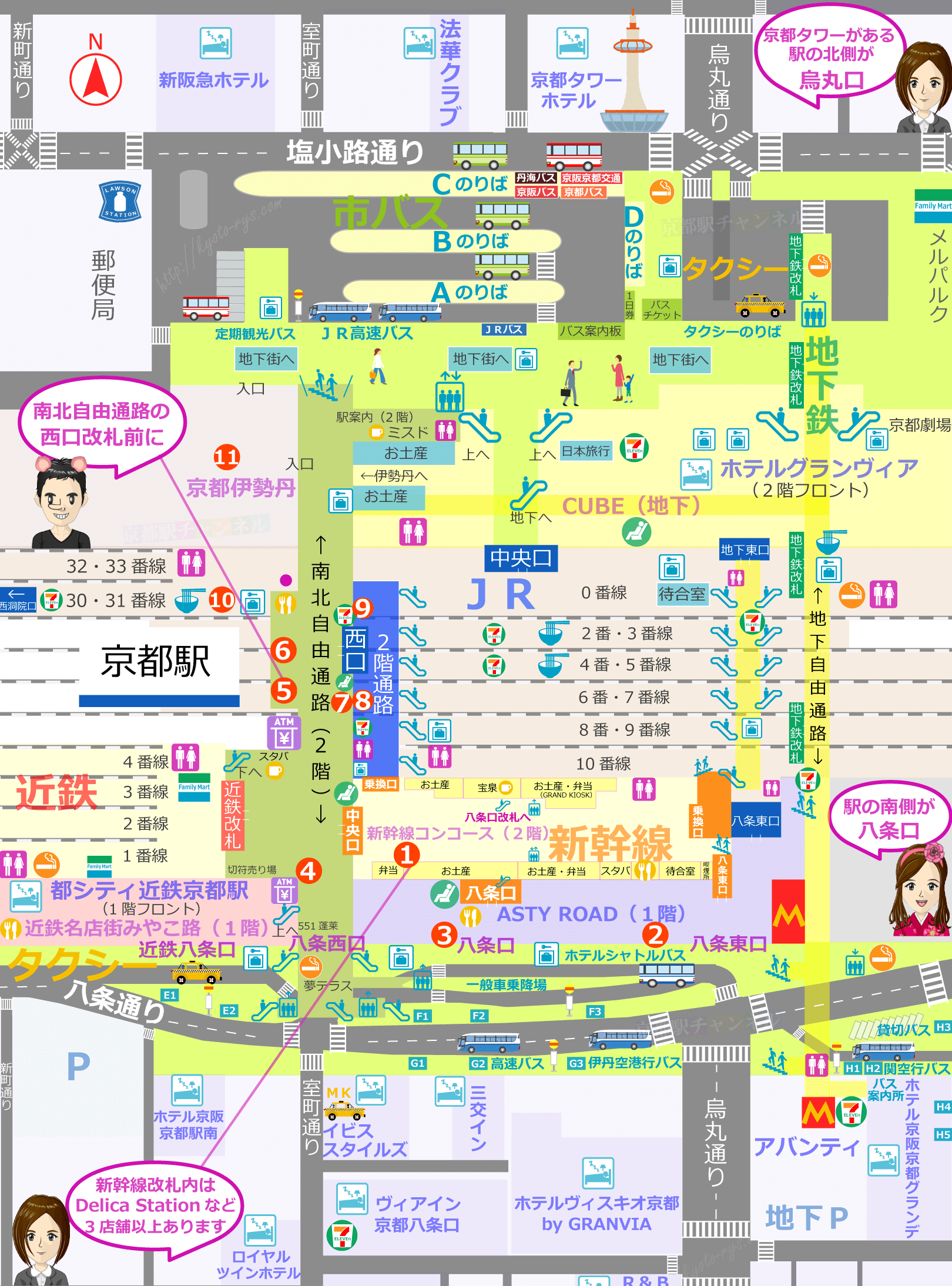 京都駅の駅弁売り場6店マップと営業時間 6時~22時京都駅お土産売り場ガイド。
