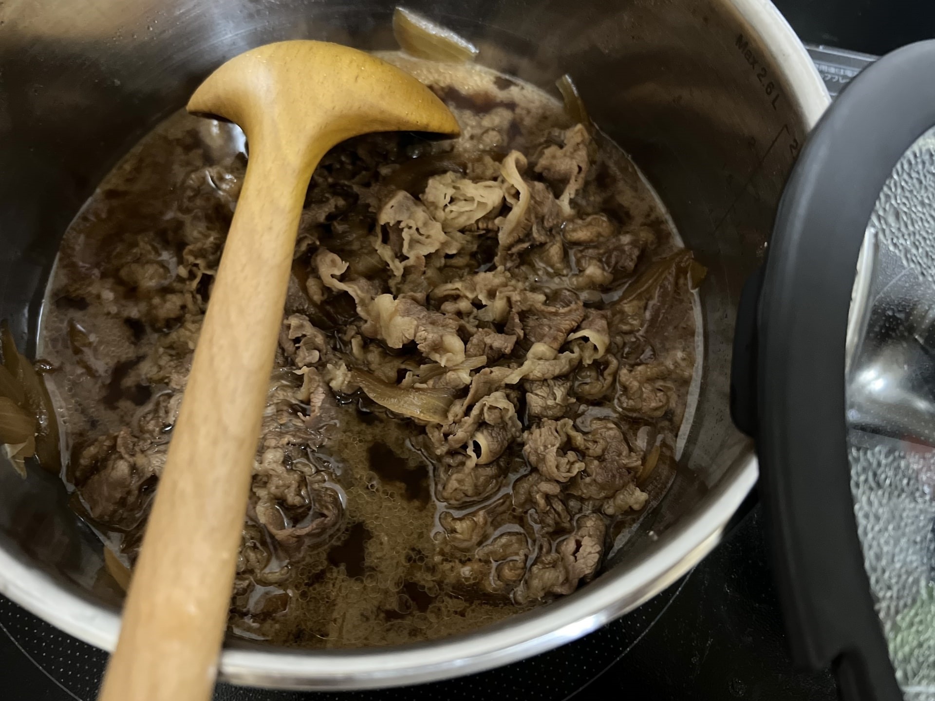 10分煮るだけ♪黄金比率の甘辛つゆで つゆだく牛丼簡単 お昼ごはん。