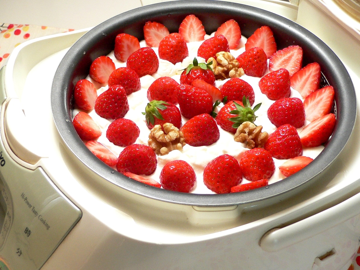 あけてビックリ! 炊飯器のいちごスコップケーキ。