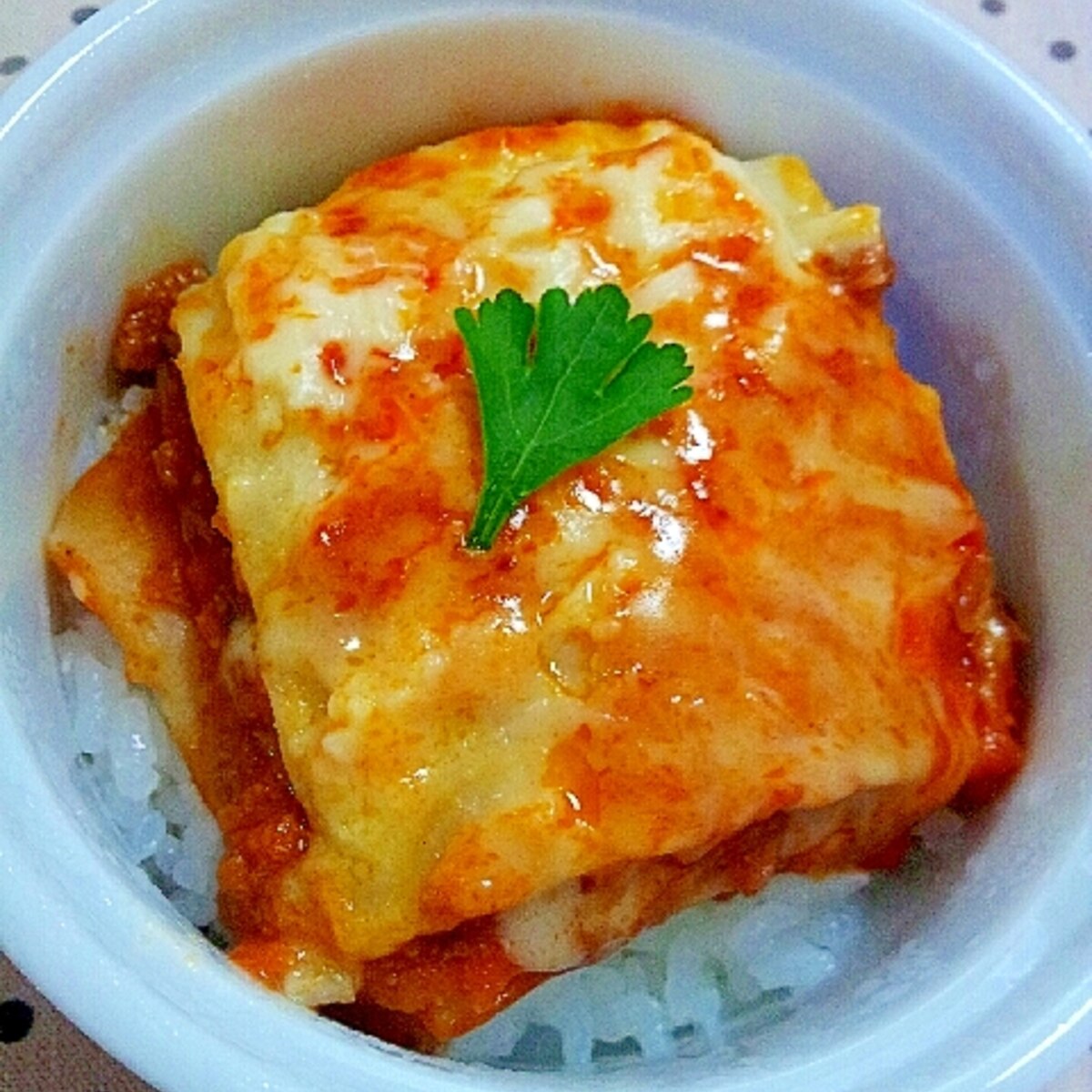 ミートソースのリメイク、チーズ重ね焼き♪。