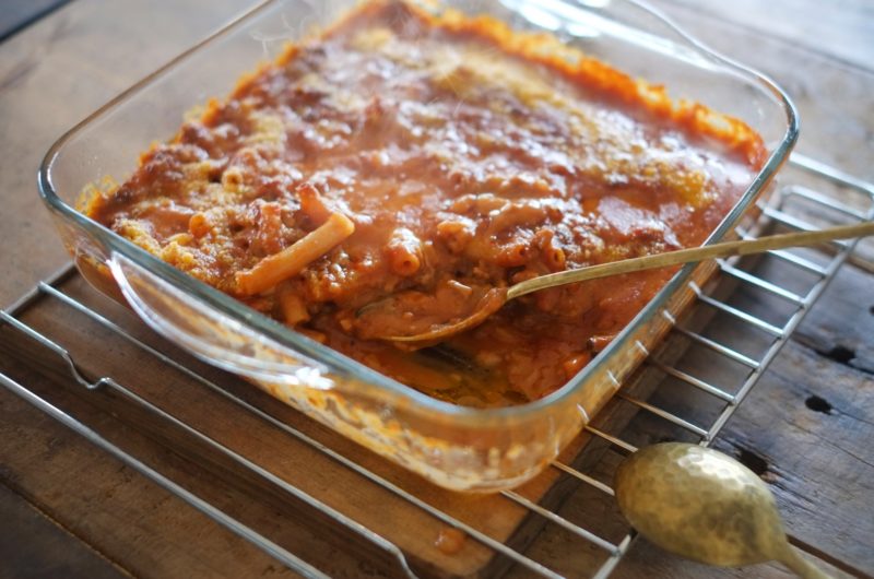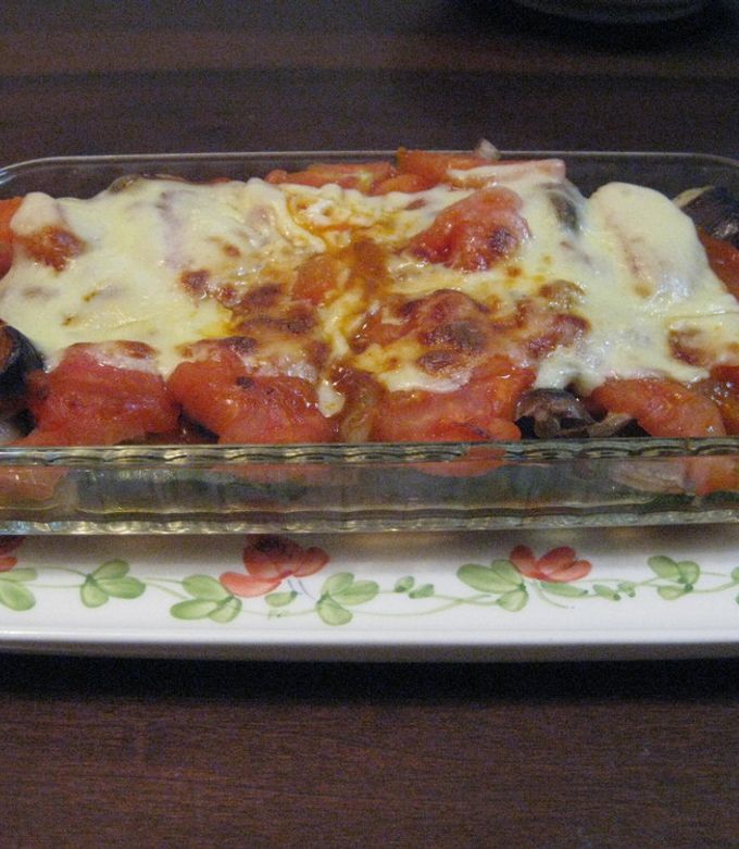 なすとミートソースの重ね焼きトキワさん家のキッチン。