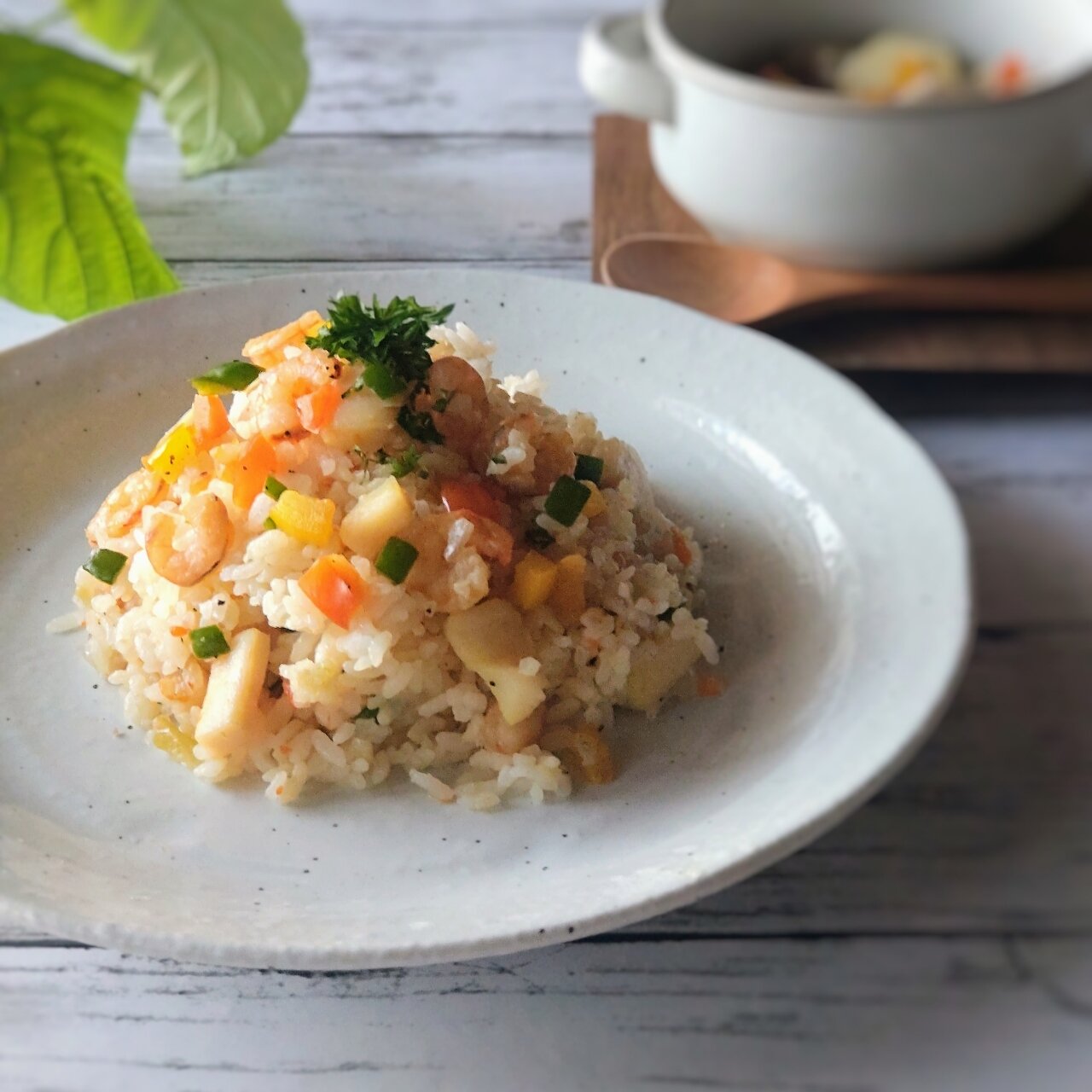 コンソメ不要 玉ねぎ麹シーフードピラフ 作り方 炊飯器使用 : manaの発酵ごはんいただきます。
