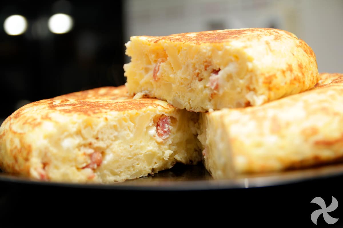 ベーコンとモッツァレラチーズを詰めたスペイン風オムレツ。