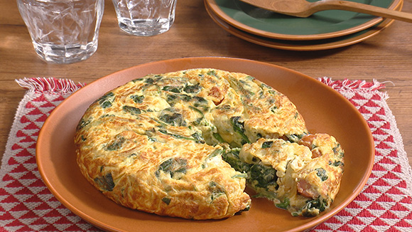 ほうれん草とチョリソーのスパニッシュオムレツ。