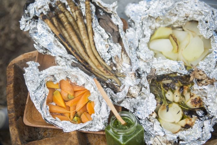焚き火で根菜のローストEAT LOCAL KOBE。