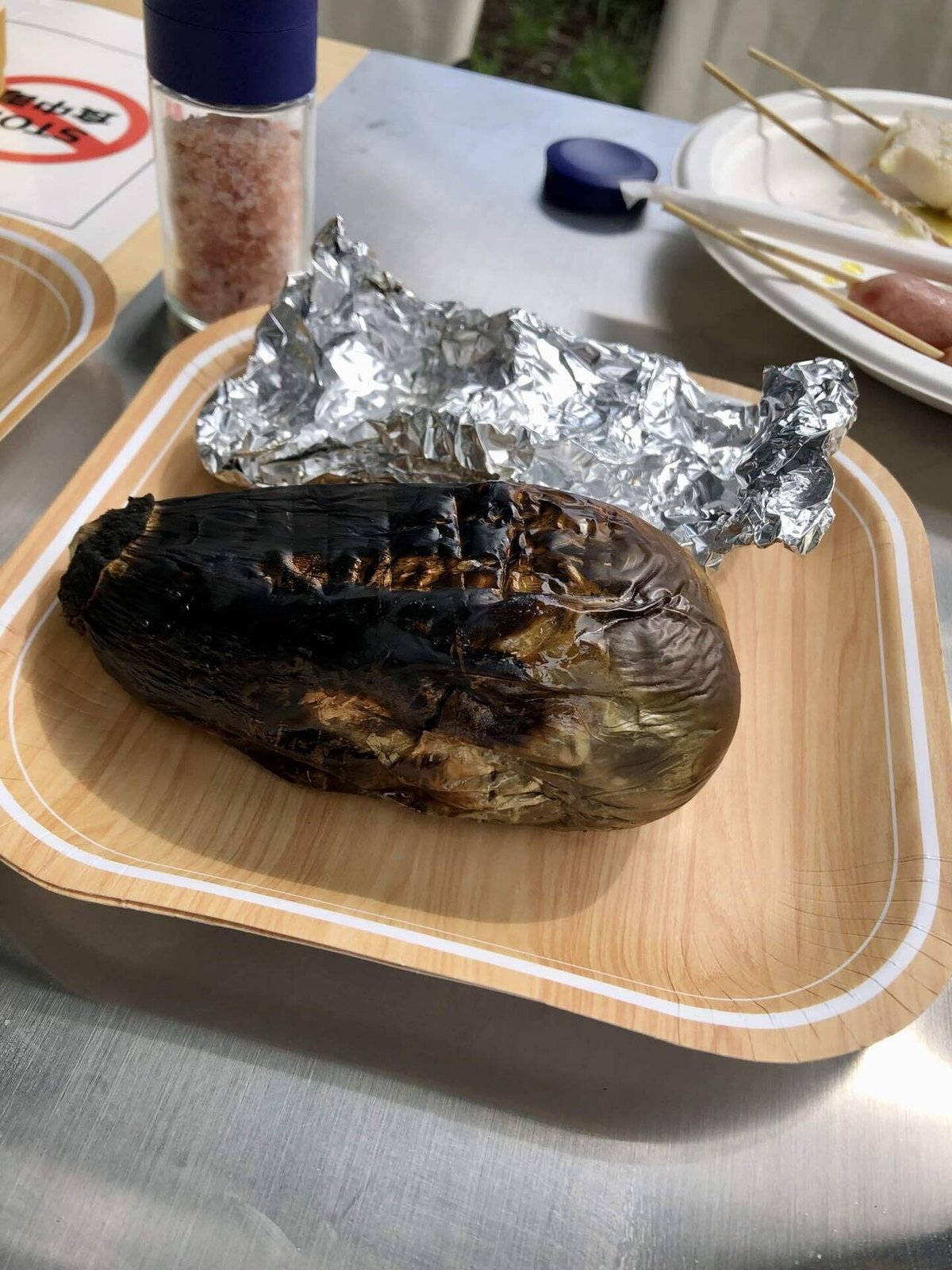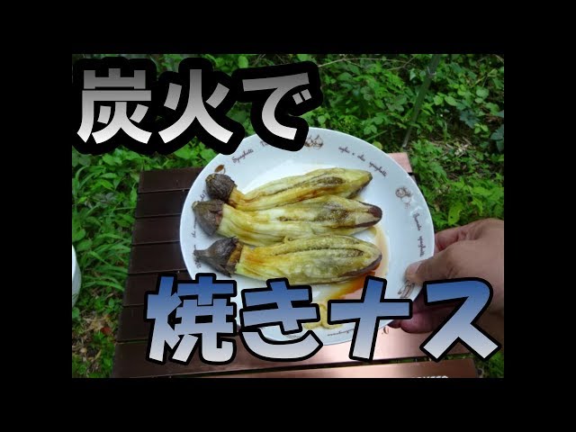 キャンプ飯 ほんとにおいしい茄子の丸焼。