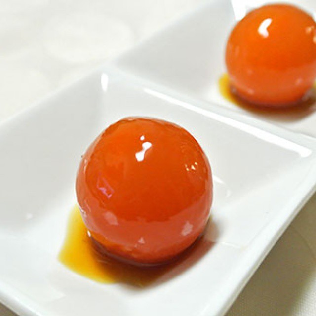 冷凍卵の黄身の醤油漬け。
