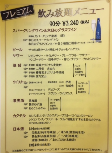 レストラン「seasons」 ”プレミアム”飲み放題のご案内♪ – 秋保温泉 ホテル瑞鳳。