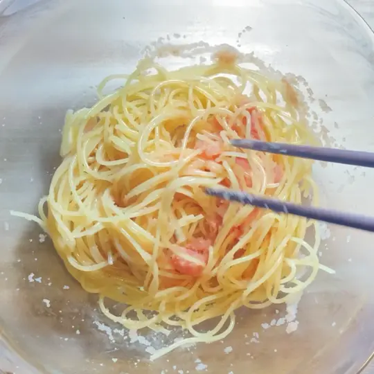 簡単!茹でて混ぜるだけの「生たらこ和風パスタ」ズボラ飯レシピサイト「ながらめしJP」。