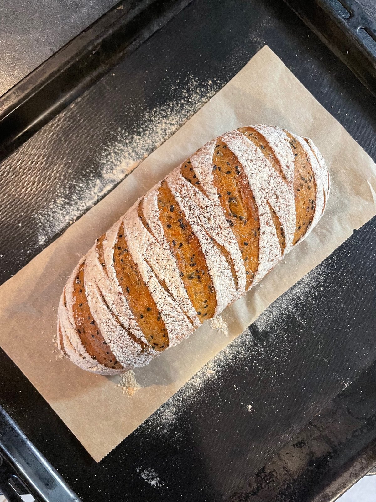 自宅で簡単、黒胡麻のパン・ド・カンパーニュchef ichi。