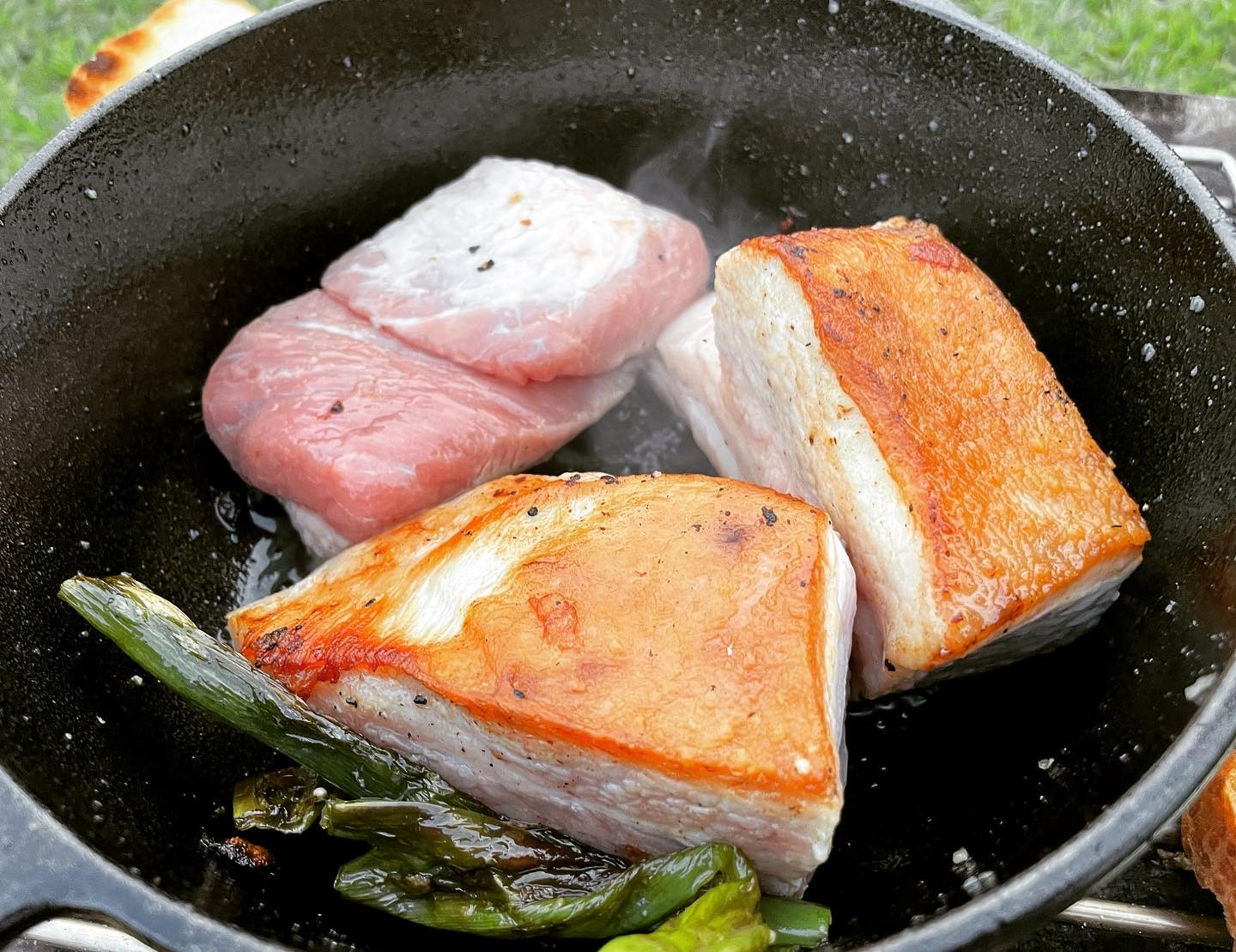 ダッチオーブンで作る本格チャーシューでアレンジ料理-そとごはん-キャンプ・アウトドアのTAKIBI タキビ。