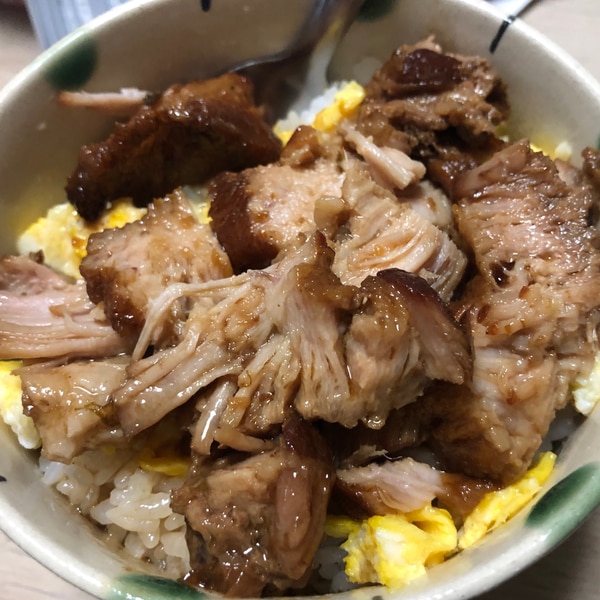キャンプ飯♪ダッチオーブンで柔らかチャーシュー卵丼。