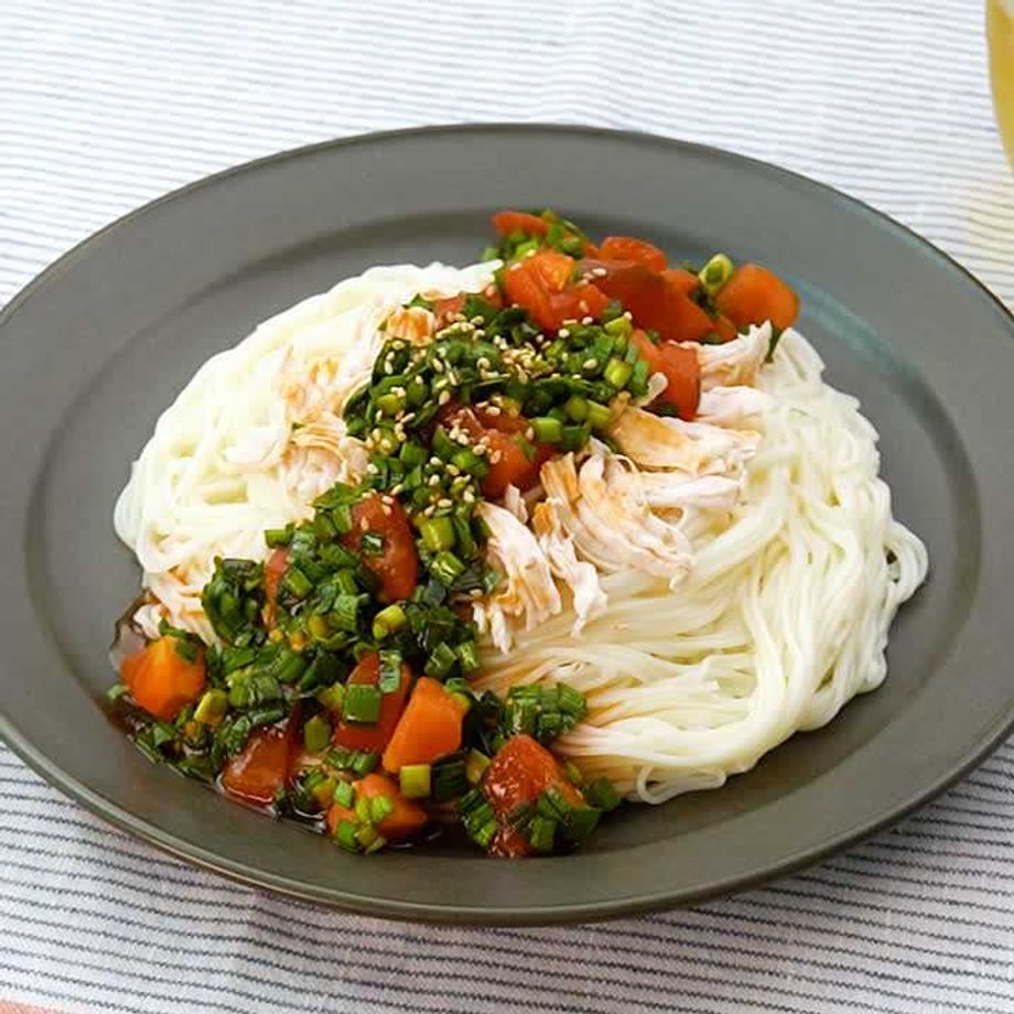 20分で完成!時短献立♪ ニラだれ旨辛そうめん。