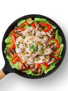 あごだしぽん酢 豚肉とキャベツのワンパン蒸しレシピ情報おいしさ、あごの差。くばら久原醤油。