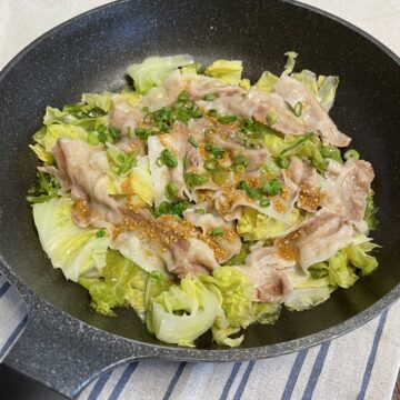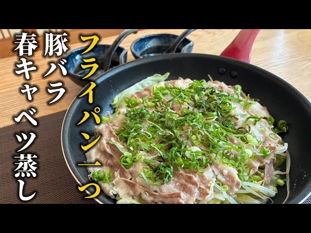 春キャベツと豚バラ肉のフライパン蒸し ワンパンで超簡単。
