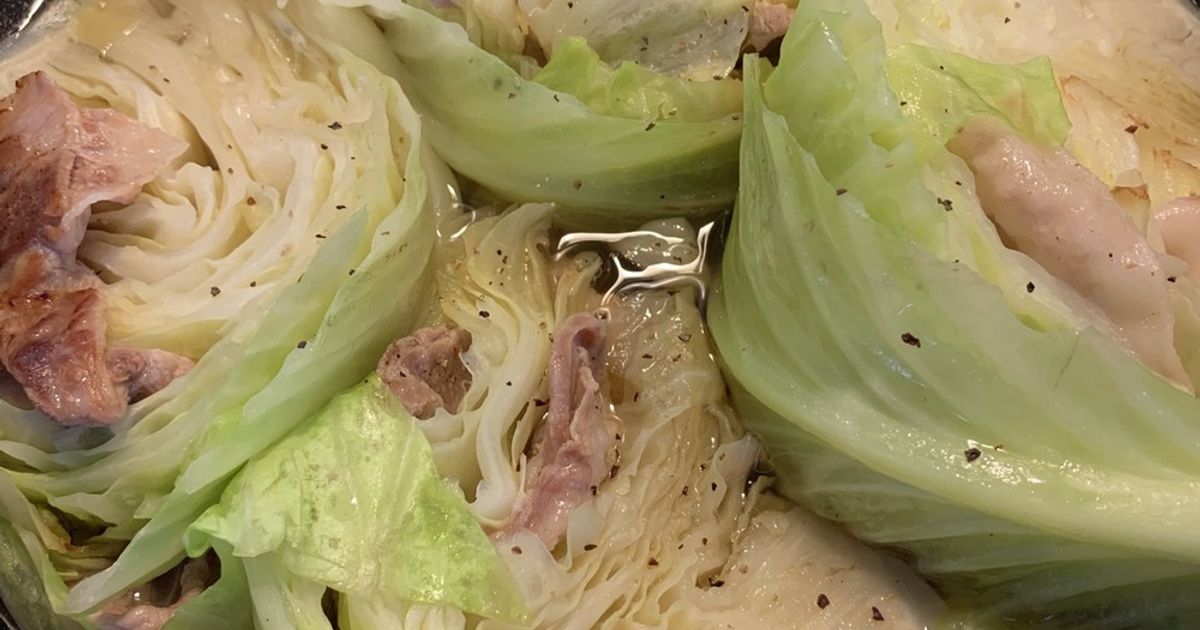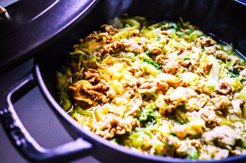 キャベツと豚バラ肉の蒸し料理レシピ。