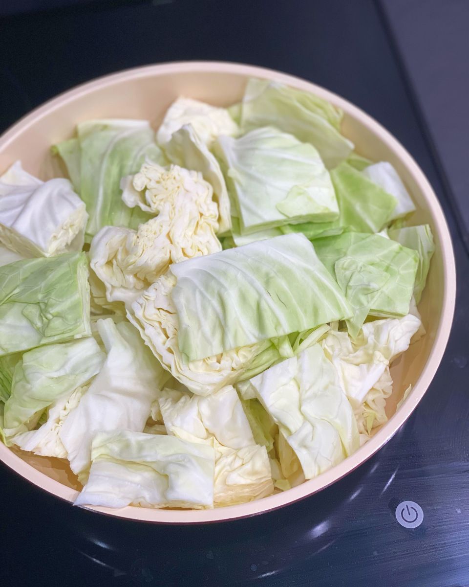 簡単!フライパンに入れるだけ!春キャベツと豚バラのフライパン蒸しを作ってみた。