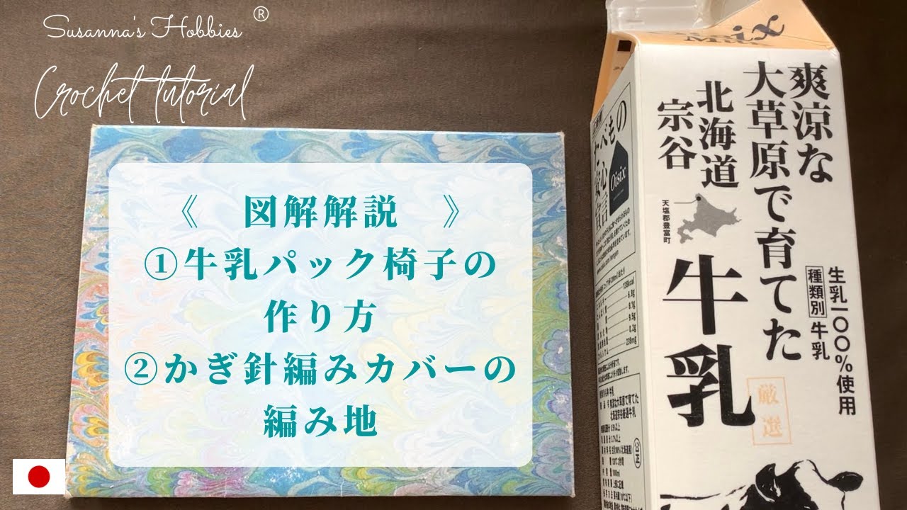 かぎ編み🔰 ①牛乳パック椅子カバー!細編みと長編みだけ!お子様お孫ちゃんと一緒に!夏休み企画!自由工作! 牛乳パック椅子細編み鍵編みこま編みcrochet円の編み方百均糸。