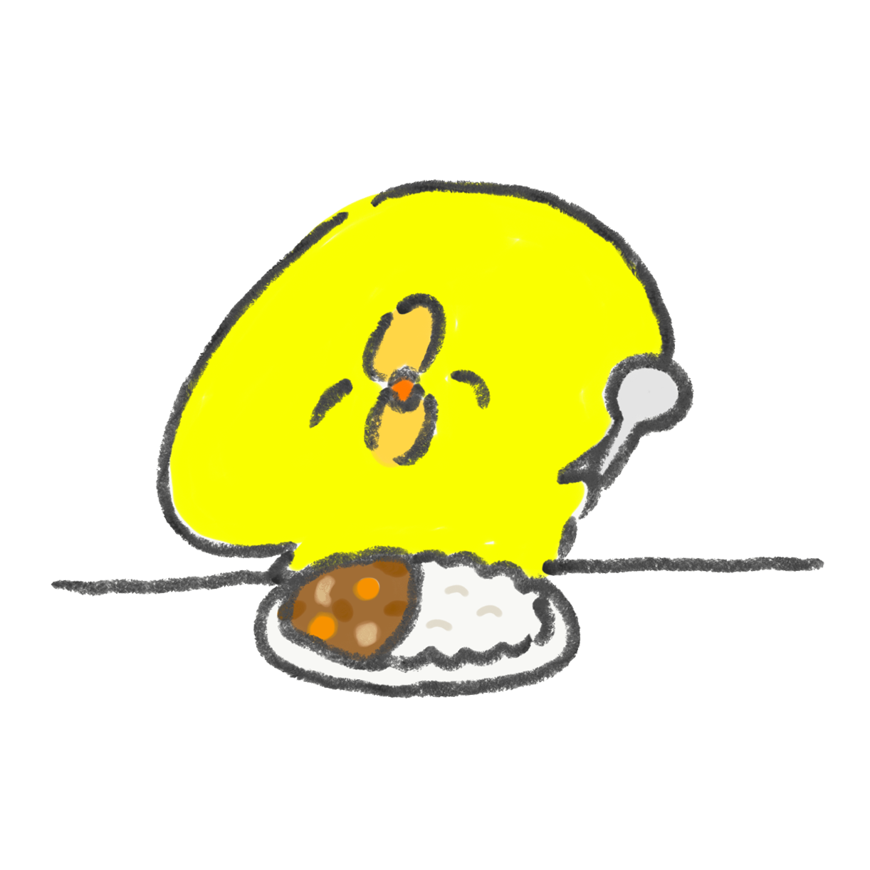 カレーライスをいただくひよこのイラストゆるくてかわいい無料イラスト・アイコン素材屋「ぴよたそ」。