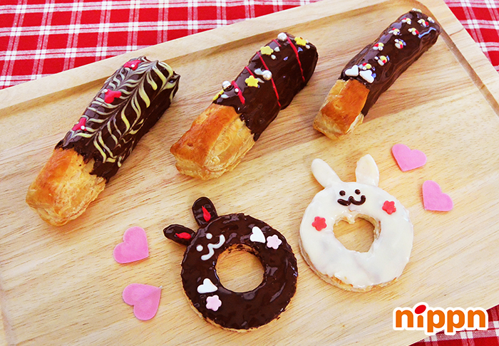 レースやリボン、水玉を描いて楽しい!いつものチョコパイがバレンタインスイーツに早変わり - レタスクラブ。
