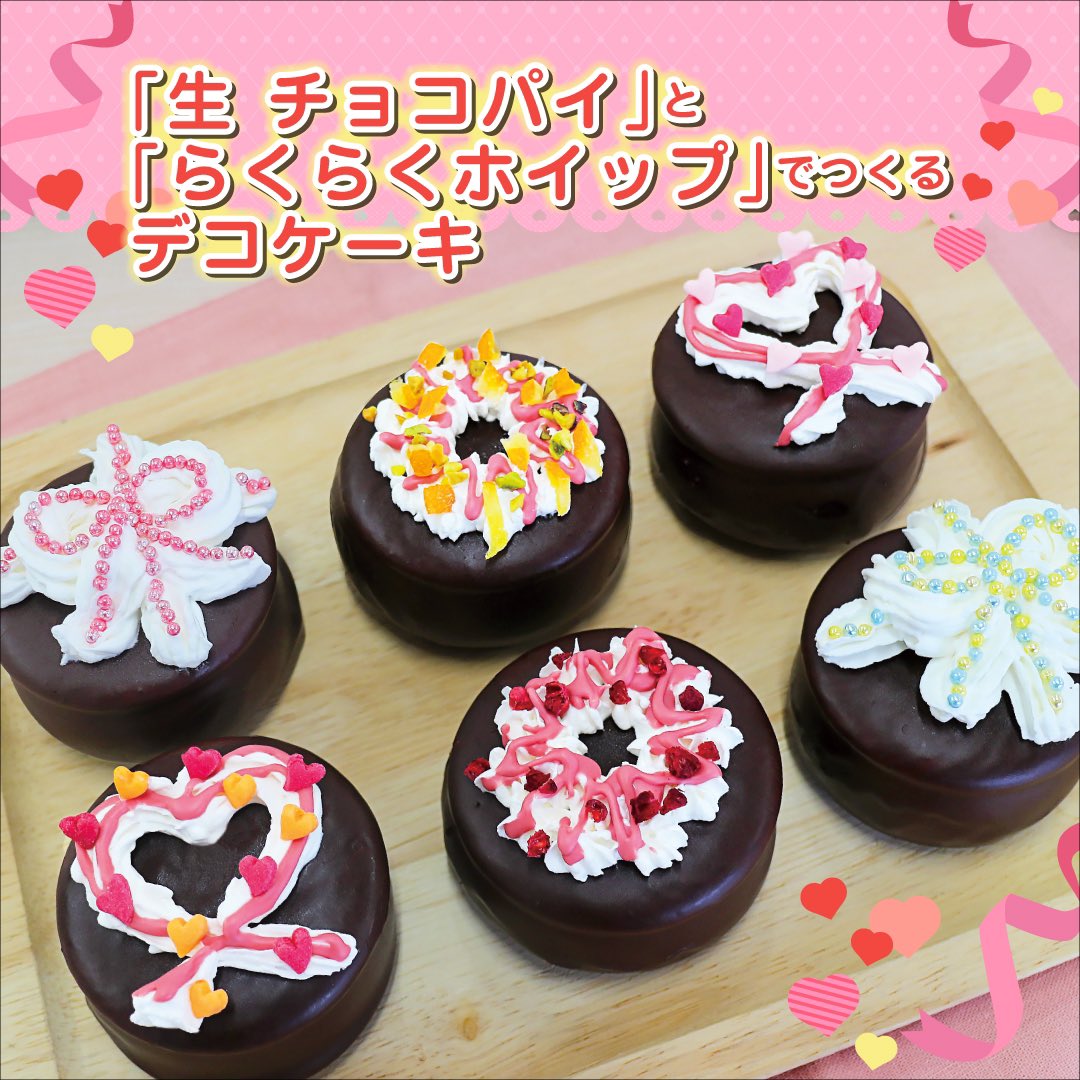 トーラク株式会社 公式on X: "バレンタインにおすすめ 「生 チョコパイ」を使った簡単スイーツです💕 「生 チョコパイ 」」に「らくらくホイップ」をしぼりチョコ菓子やチョコペンでデコするだけ♪ 色々なデザインを並べるだけでベリーキュート🥰 お友達とのプレゼント。