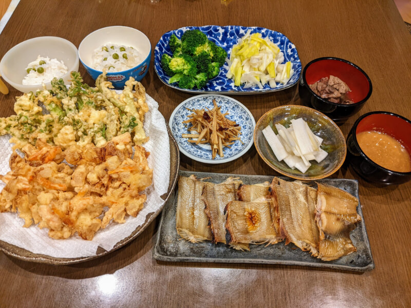 節約主婦が作る🍳夫が休みの日の晩ごはん献立。