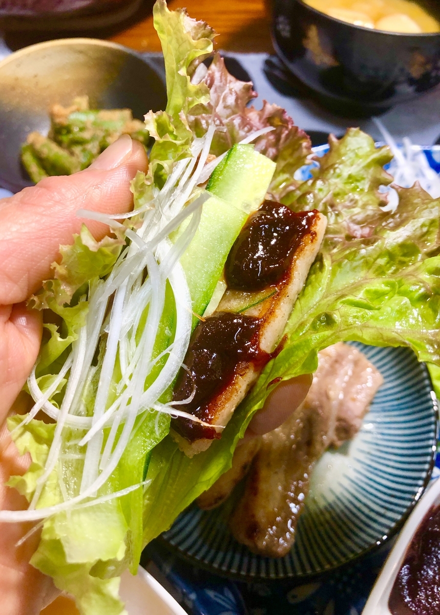 サムギョプサル」手に持って食べる肉の噛み応えが、美味しくて面白い! - 糖質オフのおうちごはん~持病があっても楽しく生きる~。