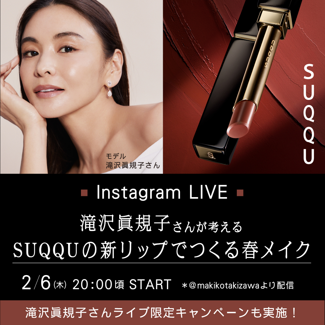 SUQQU official on X: " スペシャルInstagramライブ開催本日20:00頃~ 人気モデル滝沢眞規子 さん✖️SUQQU 滝沢さんがSUQQUの新作「ベルベット フィット リップスティック」を使用し春メイクをご紹介。 限定キャンペーンも。 配信はこちらhttps:t.co。