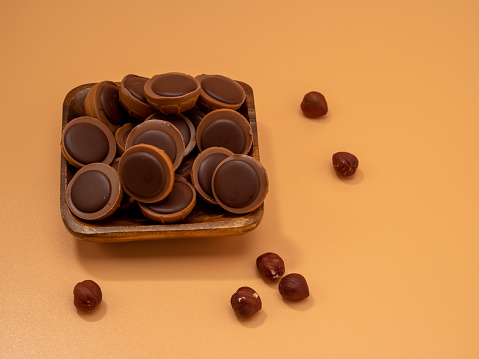 オレンジの背景にチョコレート菓子キャラメルのお菓子丸いチョコレート - おやつのストックフォトや画像を多数ご用意 - おやつ, カラメル, カラー画像- iStock。