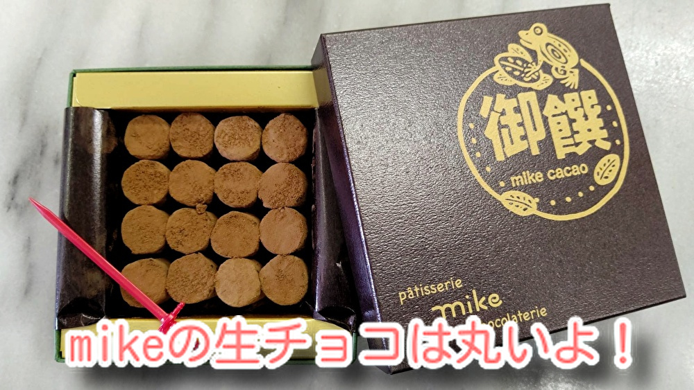 あなたは 生チョコ 好きですか?四角い形が多いですがmikeは丸いのは何ででしょう菓子工房mike 東広島市で親しまれる洋菓子店御 饌cacaoは、西条酒蔵通りにあるチョコレート・焼き菓子の専門店。