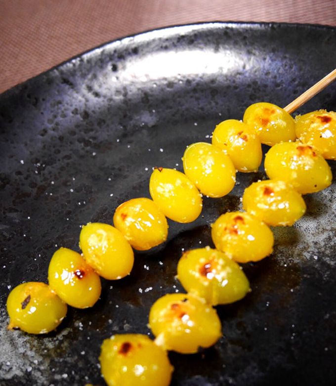 銀杏の煎り焼き串焼き。五島の魅力と火熾し記 炭火焼レシピ。