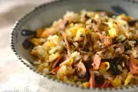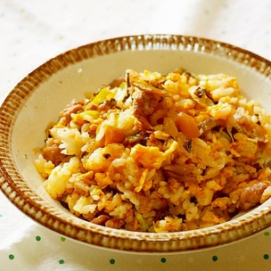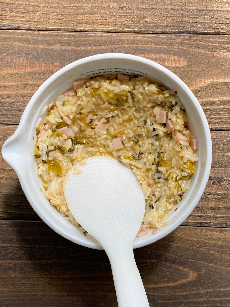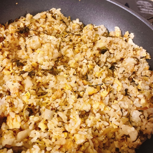 余った炊き込みご飯で☆ごま高菜炒飯。