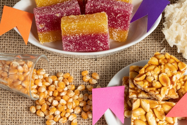 ブラジルの伝統的な6月のパーティー フェスタジュニーナ の食べ物。Premium写真。