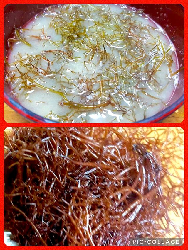 旬の海藻「いぎす」。味噌汁に入れると瞬間トロトロになります。少し歯ごたえ残ってるうちに食べるのがおすすめです^_^。