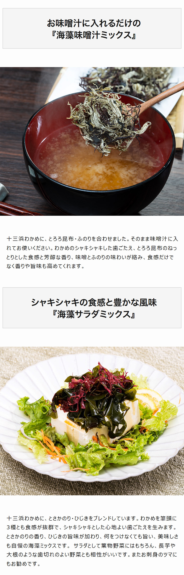 風味豊かなシャキシャキ海藻を楽しめる「海藻味噌汁ミックス」&「海藻サラダミックス」 宮城県 浜人うまいもんドットコム。