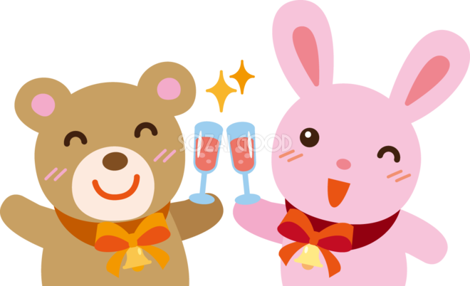 乾杯をする動物たちのかわいいイラスト無料フリー34849素材Good。