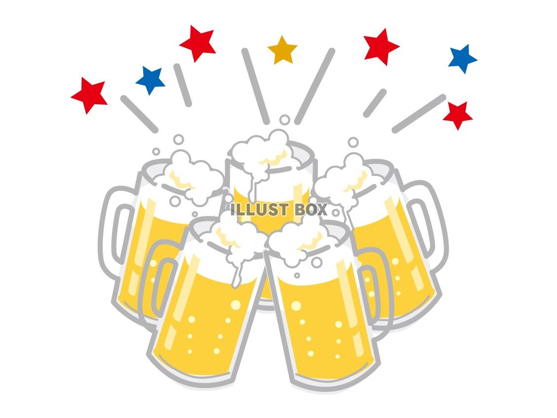 乾杯のビールジョッキイラストのフリー素材イラストイメージ。