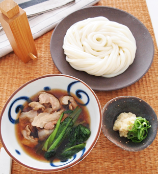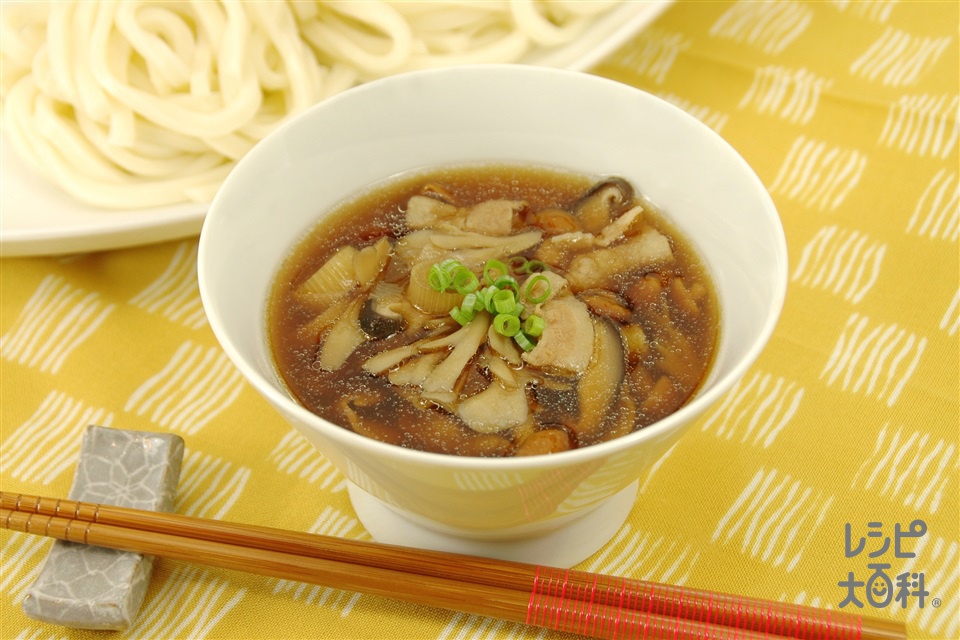 だしブレンドrecipe肉汁つけうどん:白ごはん.com。