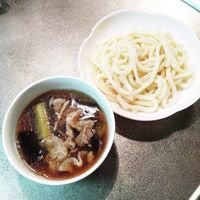 武蔵野うどん風肉汁つけうどん。