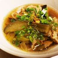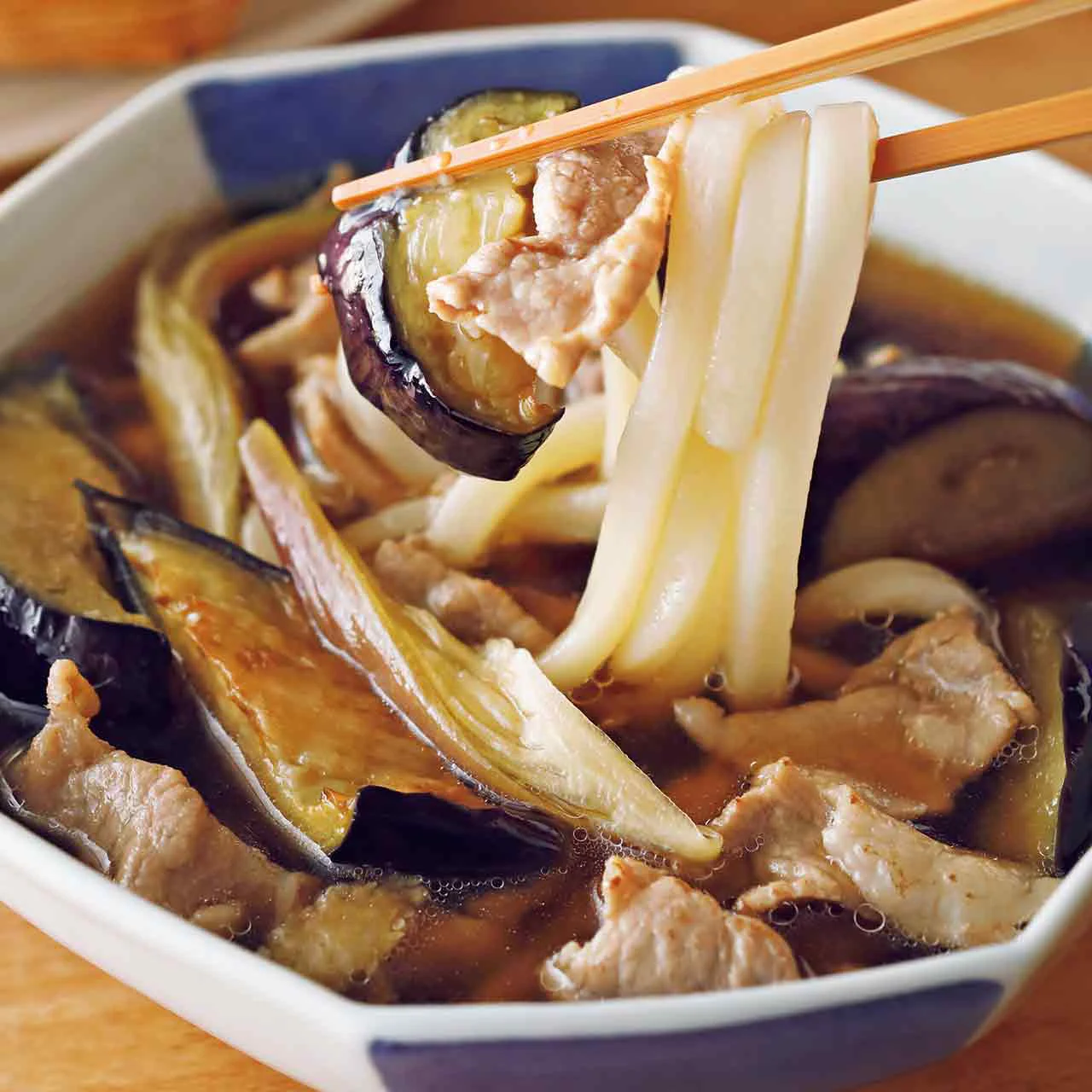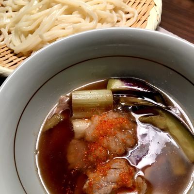 豚肉となすのつけうどん。