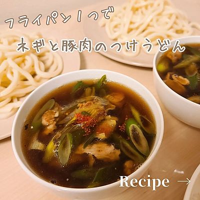絶品♡豚ネギつけうどん簡単時短節約ランチ。