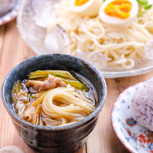 だしつゆ 甘辛豚肉つけそうめん。ICHIBANレシピ集。