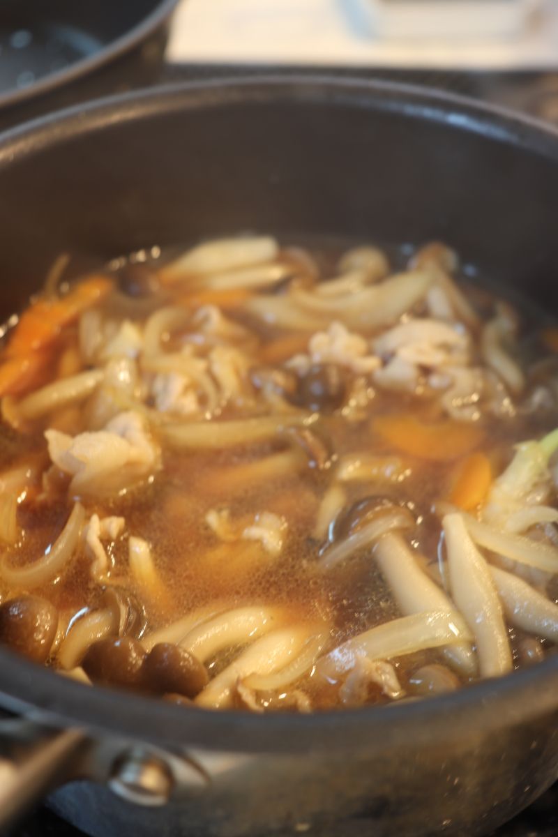 豚バラときのこのつけうどん。